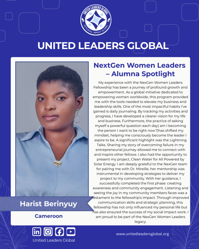 Harist’s experience reflects the mission of the NextGen Women Leaders Fellowship: equipping women with the skills, confidence, and support needed to lead meaningful change and create lasting impact in their communities and beyond. 🤍