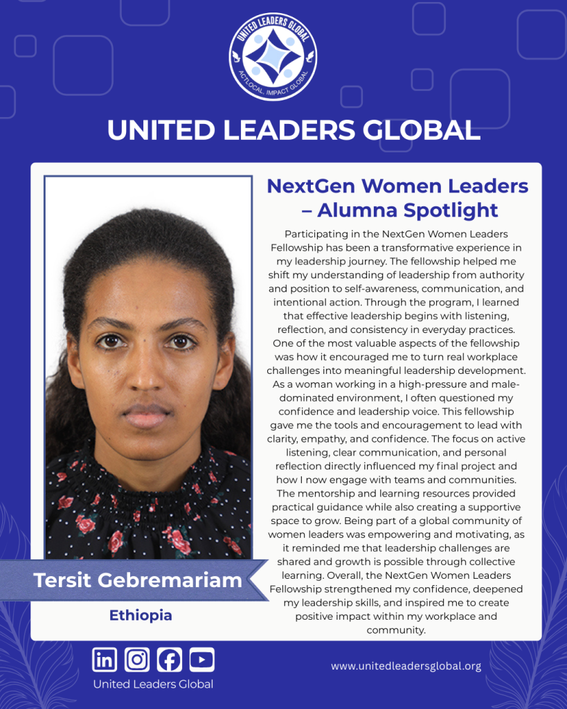 Tersit’s journey reflects the mission of the NextGen Women Leaders Fellowship: strengthening leadership skills, building confidence, and empowering women to create positive impact within their workplaces and communities. 🤍